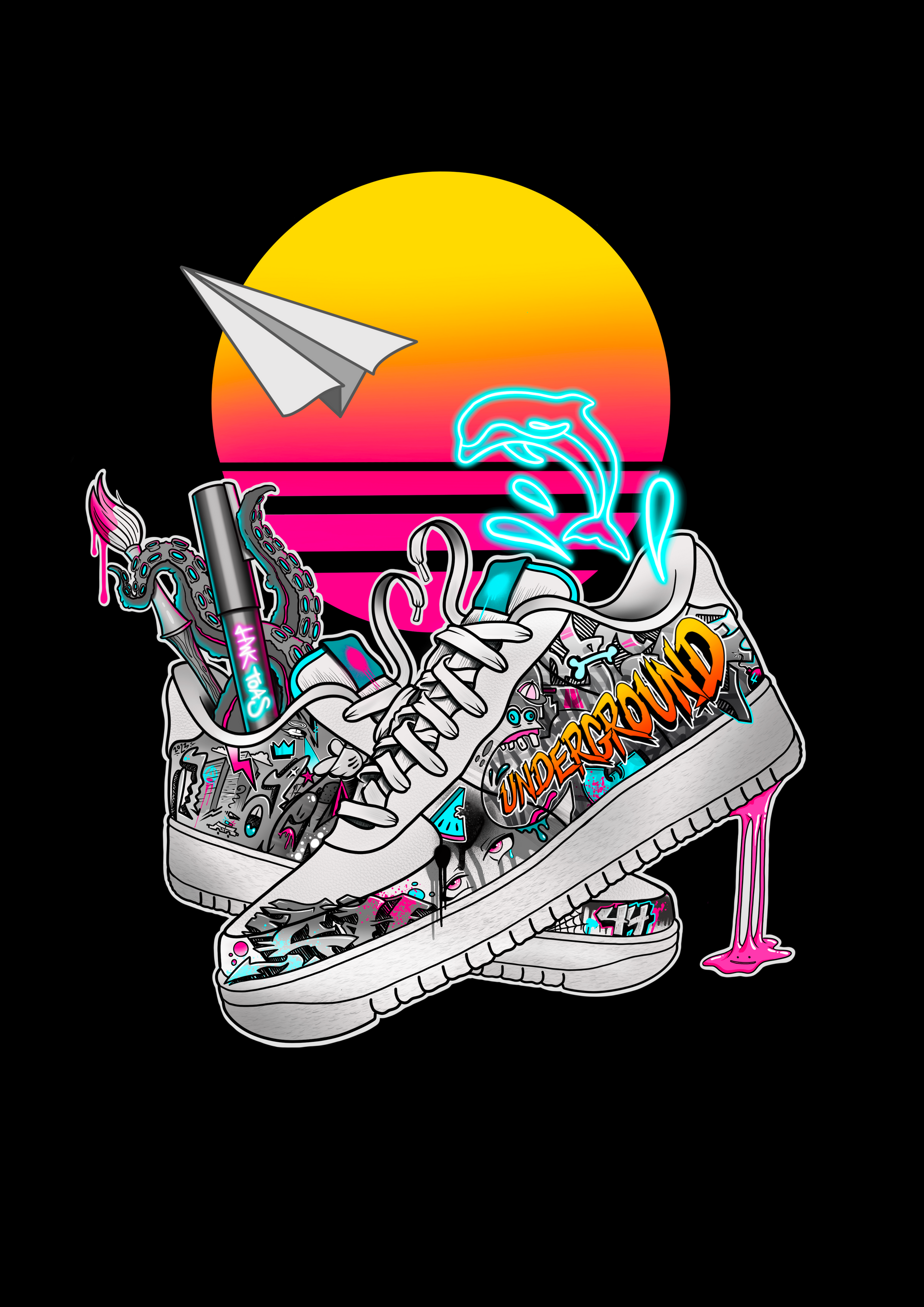 De forskjellige fargene, grafittien og det røffe uttrykket man finner i gatene, kommer frem gjennom stilen til kunstnerne. Det ligger glede, et lekent uttrykk bak verkene, og man ser tydelig inspirasjon fra 80/90 tallet i farger og elementer i kunsten.