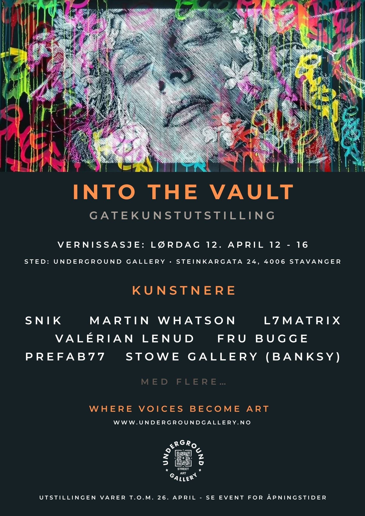 Bli med Underground Gallery 'Into the Vault' - på gatekunstutstilling i Stavanger. Vi er stolte over å vise frem noen av galleriets kunstskatter, og kjører en oppfølging av suksessutstillingen fra de siste 2 årene!