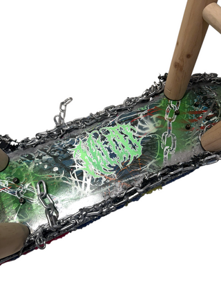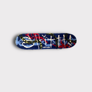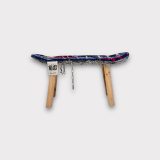 Str.: ca. 80 x 20 x 50 cmTeknikk: Akryl, tufting, garn, snekring, stencil og tusj