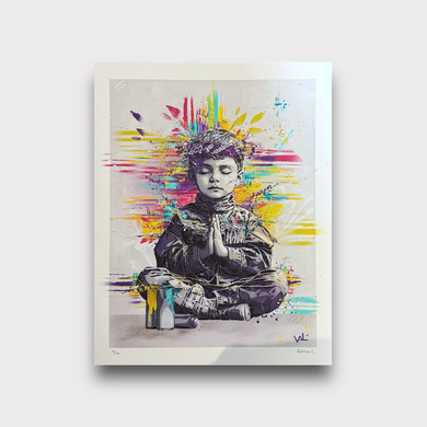 “Child Soldiers of Peace” collection. The “Child Soldiers of Peace” collection is a series of works of art created by the artist Valérian. The works feature children wearing military uniforms, but instead of being armed, they wear peace symbols and painting accessories. Valérian created this series to raise awareness of the tragic consequences of war on children and to encourage peace and tolerance. The bright and cheerful colors of the works contrast with the military context, which recalls the innocence of children and their natural desire for peace. Painted with spray paint, acrylic and oil pastel on canvas.