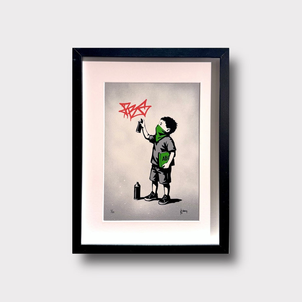 Str. innrammet: 41,5 x 32 cmTeknikk: Stencil, spray, tusj og tag