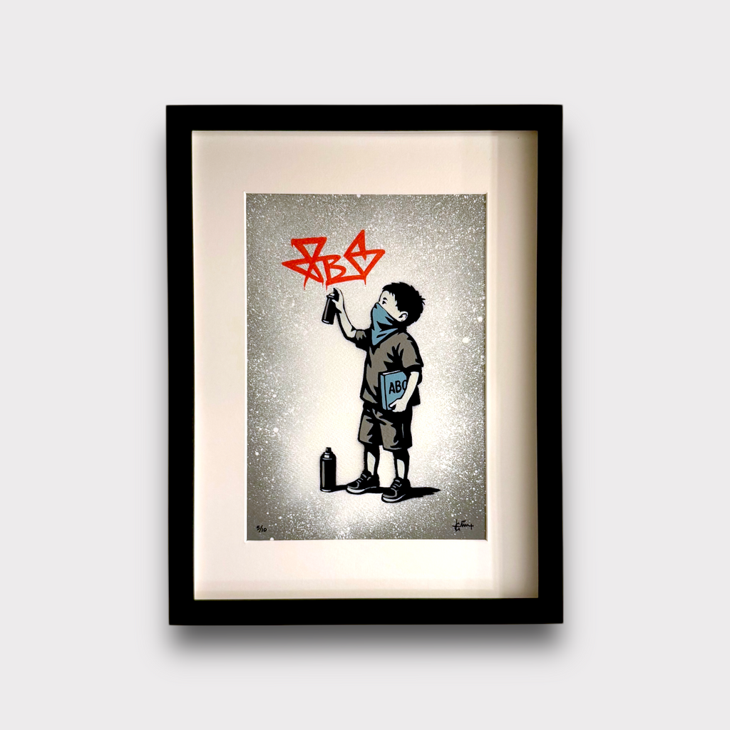 Str. innrammet: 41,5 x 32 cmTeknikk: Stencil, spray, tusj og tag
