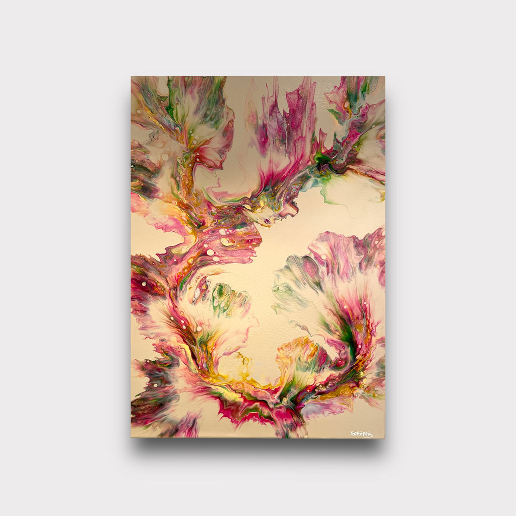 Velkommen til et fargerikt univers av abstrakt kunst. Studio Schöppis skaper unike malerier I et bredt spekter av fargekombinasjoner, hvor hvert verk har sitt eget uttrykk og særpreg. Ingen er like. Her finnes noe for en hver smak. Helene lar seg inspirere av sterke, farikerike toner. Hensikten er å skape kunst som sprer glede, løfter humøret og tilfører rommet liv, god energi og personlighet. Hun jobber mye med mixed media, men teknikken hun I hovedsak jobber mest med er kaldt pour painting.