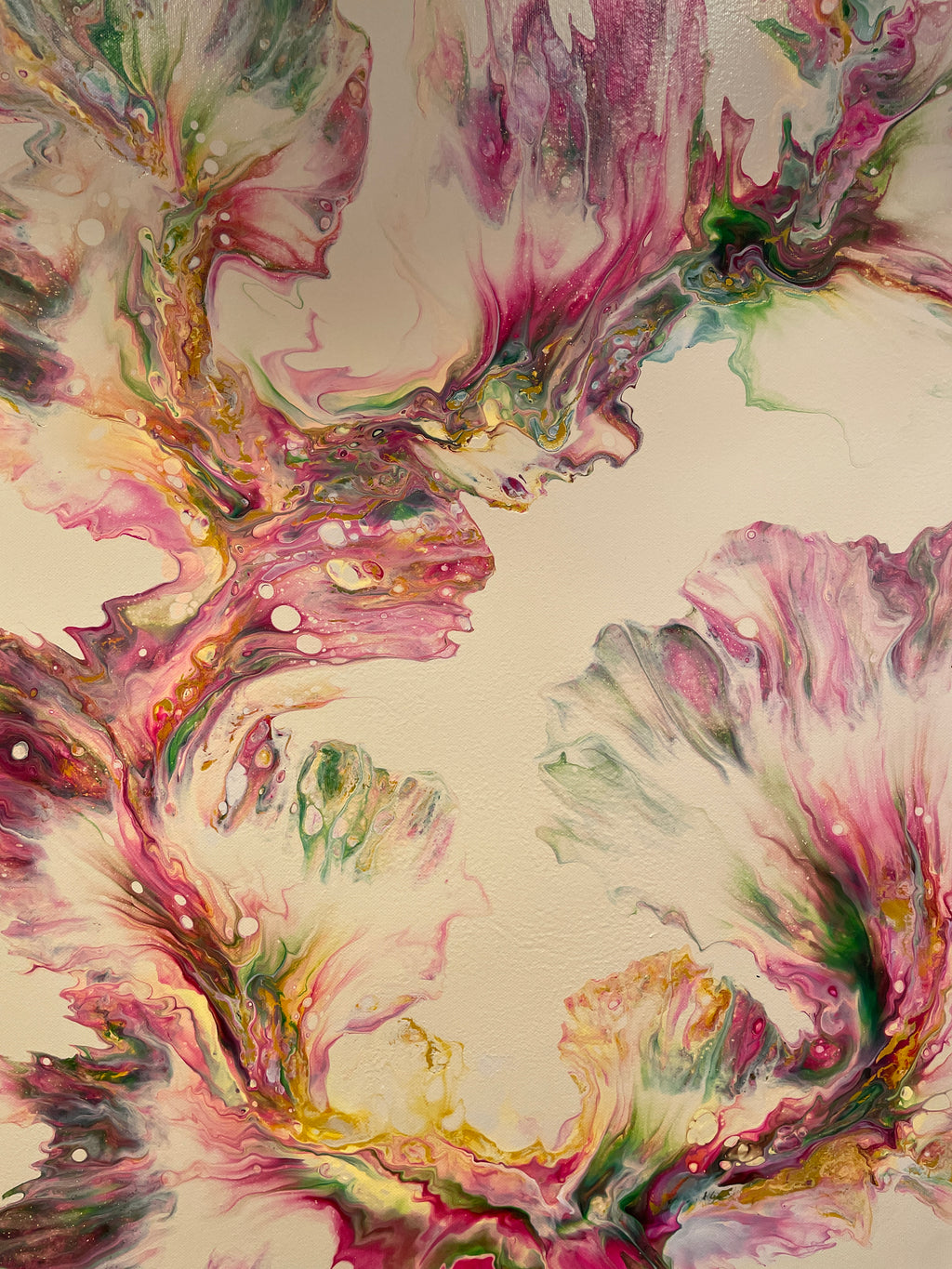 Hensikten er å skape kunst som sprer glede, løfter humøret og tilfører rommet liv, god energi og personlighet. Hun jobber mye med mixed media, men teknikken hun I hovedsak jobber mest med er kaldt pour painting.